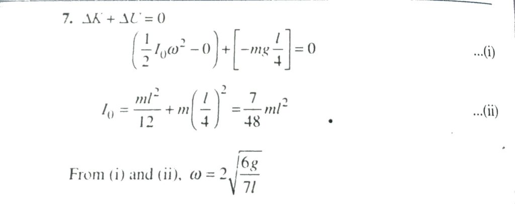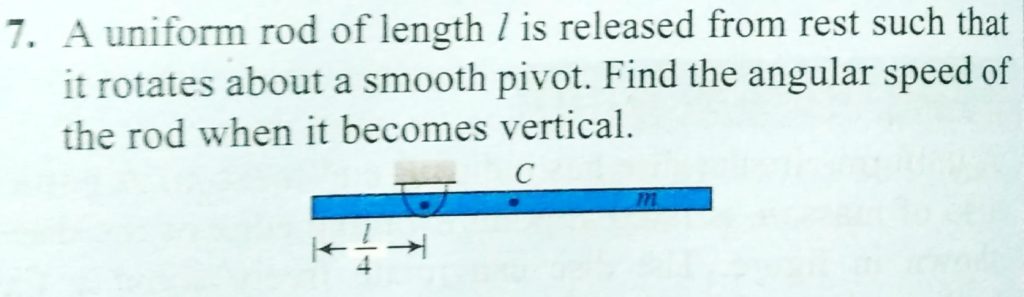A uniform of length l is released from rest such that it rotates about a smooth pivot. Find the angular speed of the rod when it becomes vertical. A uniform of length l is released from rest such that it rotates about a smooth pivot. Find the angular speed of the rod when it becomes vertical. September 29, 2020 Category: Uncategorised (JEE Advanced Physics by BM Sharma + GMP Solutions) , Facebook Messenger WhatsApp Share this:TwitterFacebook Related