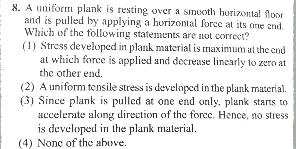 A uniform plank is resting over a smooth horizontal floor and is pulled by applying a horizontal force at its one end. Which of the following statements are correct? A uniform plank is resting over a smooth horizontal floor and is pulled by applying a horizontal force at its one end. Which of the following statements are correct? October 10, 2020 Category: Uncategorised (JEE Advanced Physics by BM Sharma + GMP Solutions) , Facebook Messenger WhatsApp Share this:TwitterFacebook Related