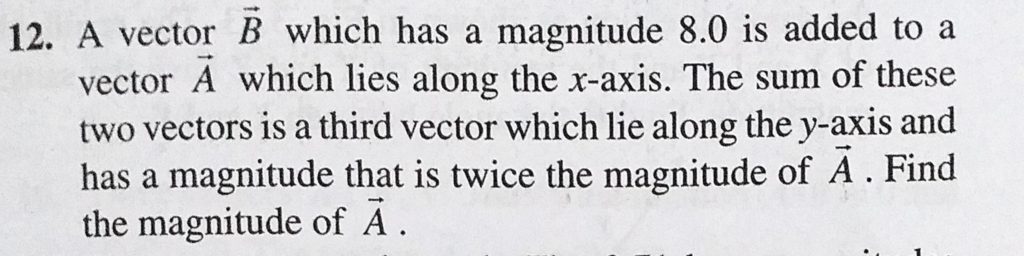 A vector B which has a magnitude 8.0 is added to a vector A which lies along the x-axis. The sum of these two vectors is a third vector which lie along the y axis and has a magnitude A vector B which has a magnitude 8.0 is added to a vector A which lies along the x-axis. The sum of these two vectors is a third vector which lie along the y axis and has a magnitude September 17, 2020 Category: Uncategorised (JEE Advanced Physics by BM Sharma + GMP Solutions) , Facebook Messenger WhatsApp Share this:TwitterFacebook Related