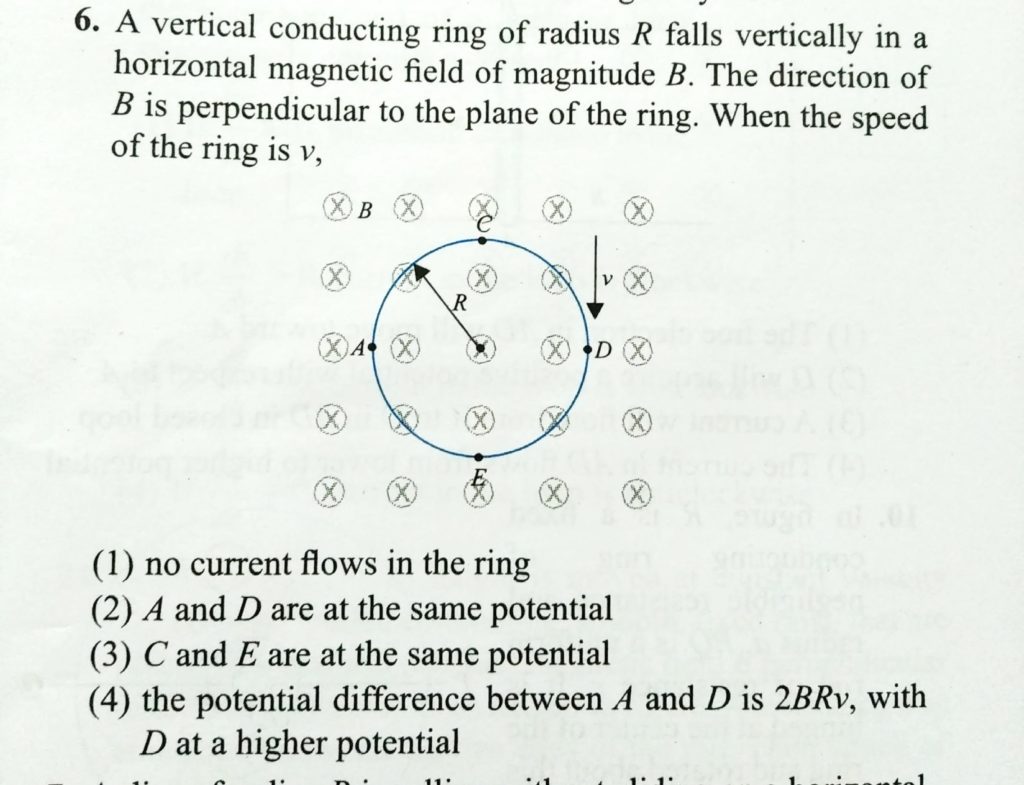 A vertical conducting ring of radius R falls vertically in a horizontal magnetic field of magnitude B. The direction of B is perpendicular to the plane of the ring. when the speed of the ring is v, A vertical conducting ring of radius R falls vertically in a horizontal magnetic field of magnitude B. The direction of B is perpendicular to the plane of the ring. when the speed of the ring is v October 21, 2020 Category: Uncategorised (JEE Advanced Physics by BM Sharma + GMP Solutions) , Facebook Messenger WhatsApp Share this:TwitterFacebook Related