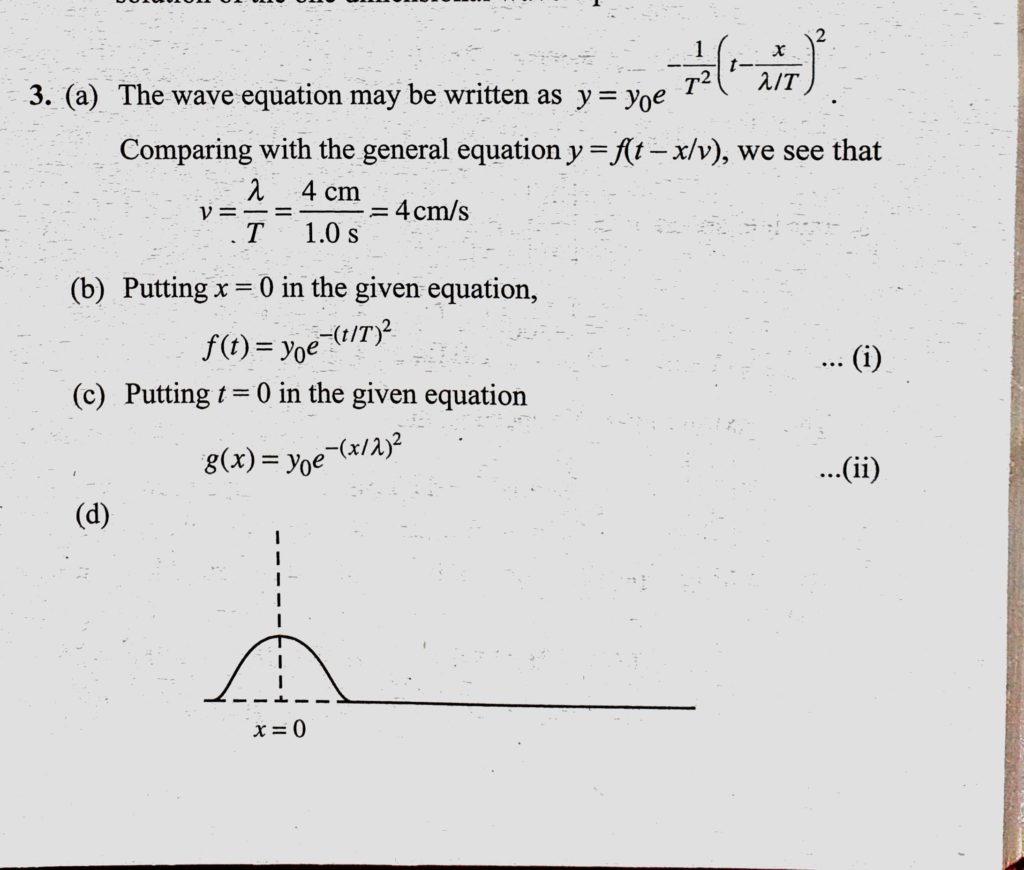 A wave is propagating on a long stretched string along its length taken as the positive x-axis. The wave equation is given as y = y0e ^ -(t/T – x/lemda)^2 where y. = 4 mm, T = 1.0 s and lemda = 4 cm. (a) Find the velocity of the wave. A wave is propagating on a long stretched string along its length taken as the positive x-axis. The wave equation is given as y = y0e ^ -(t/T - x/lemda)^2 where y. = 4 mm T = 1.0 s and lemda = 4 cm. (a) Find the velocity of the wave. November 1, 2020 Category: Uncategorised (JEE Advanced Physics by BM Sharma + GMP Solutions) , Facebook Messenger WhatsApp Share this:TwitterFacebook Related