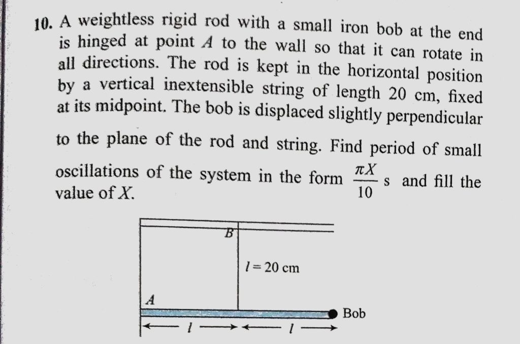 A weightless rigid rod with a small iron bob at the end is hinged at point A to the wall so that it can rotate in all directions. The rod is kept in the horizontal position by a vertical A weightless rigid rod with a small iron bob at the end is hinged at point A to the wall so that it can rotate in all directions. The rod is kept in the horizontal position by a vertical October 31, 2020 Category: Uncategorised (JEE Advanced Physics by BM Sharma + GMP Solutions) , Facebook Messenger WhatsApp Share this:TwitterFacebook Related