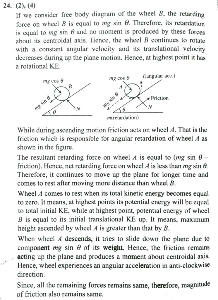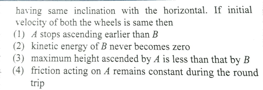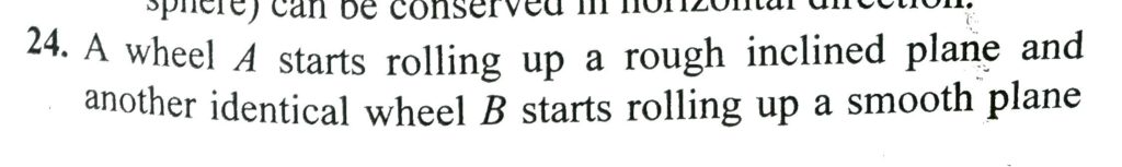 A wheel A starts rolling up a rough inclined plane and another identical wheel B starts rolling up a smooth plane having same inclination with the horizontal. If initial velocity of both the wheels is same then: A solid sphere rolls without slipping on a rough horizontal floor moving with a speed v. It makes an elastic collision with a smooth vertical wall. After impact: September 30, 2020 Category: Uncategorised (JEE Advanced Physics by BM Sharma + GMP Solutions) , Facebook Messenger WhatsApp Share this:TwitterFacebook Related