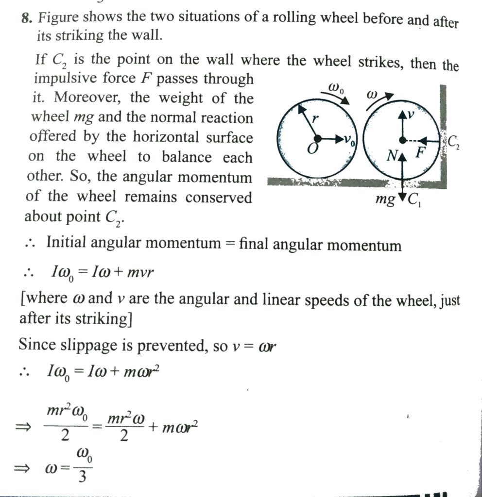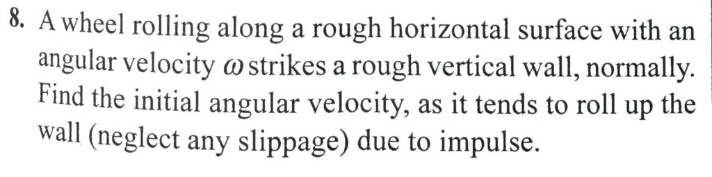 A wheel rolling along a rough horizontal surface with an angular velocity ω strikes a rough vertical wall, normally. Find the initial angular velocity, as it tends to roll up the wall (neglect any slippage) due to impulse. A wheel rolling along a rough horizontal surface with an angular velocity ω strikes a rough vertical wall as it tends to roll up the wall (neglect any slippage) due to impulse. normally. Find the initial angular velocity September 29, 2020 Category: Uncategorised (JEE Advanced Physics by BM Sharma + GMP Solutions) , Facebook Messenger WhatsApp Share this:TwitterFacebook Related