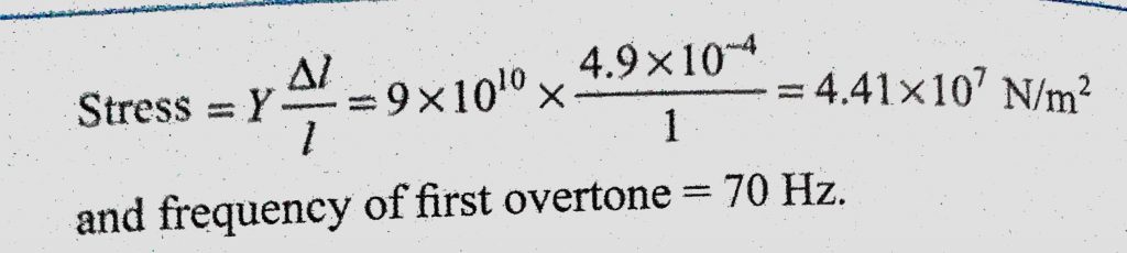 A wire of density 9 * 10^3 kg/m^3 is stretched between two clamps 1 m apart and is stretched to an extension of 4.9 * 10^-4 m. Young’s modulus of material is 9 * 10^10 N/m^2. A wire of density 9 * 10^3 kg/m^3 is stretched between two clamps 1 m apart and is stretched to an extension of 4.9 * 10^-4 m. Young's modulus of material is 9 * 10^10 N/m^2. November 6, 2020 Category: Uncategorised (JEE Advanced Physics by BM Sharma + GMP Solutions) , Facebook Messenger WhatsApp Share this:TwitterFacebook Related