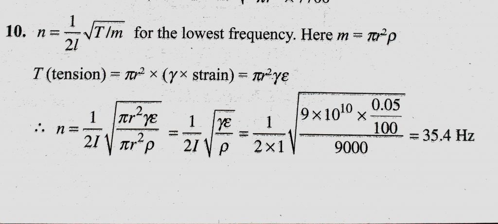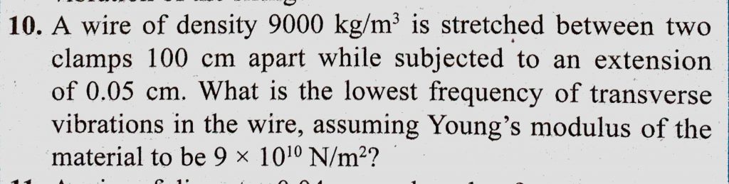 A wire of density 9000 kg/m^3 is stretched between two clamps 100 cm apart while subjected to an extension of 0.05 cm. What is the lowest frequency of transverse vibrations in the wire, A wire of density 9000 kg/m^3 is stretched between two clamps 100 cm apart while subjected to an extension of 0.05 cm. What is the lowest frequency of transverse vibrations in the wire November 5, 2020 Category: Uncategorised (JEE Advanced Physics by BM Sharma + GMP Solutions) , Facebook Messenger WhatsApp Share this:TwitterFacebook Related