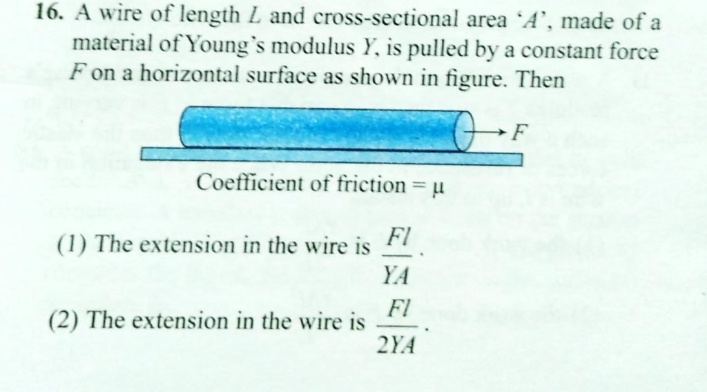 A wire of length L and cross-sectional A is made of a material of Young’s modulus Y, is pulled by a constant force F on a horizontal surface as shown in figure. Then A wire of length L and cross-sectional A is made of a material of Young's modulus Y is pulled by a constant force F on a horizontal surface as shown in figure. Then October 10, 2020 Category: Uncategorised (JEE Advanced Physics by BM Sharma + GMP Solutions) , Facebook Messenger WhatsApp Share this:TwitterFacebook Related