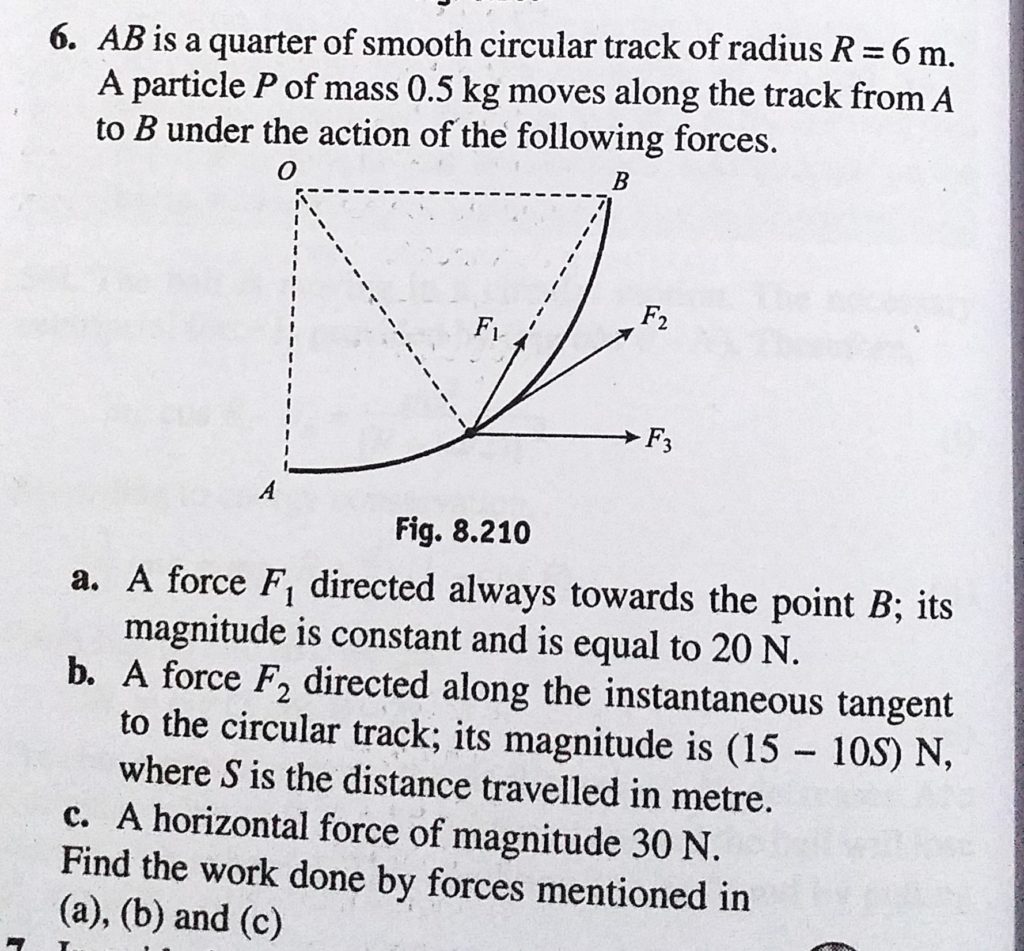 AB is a quarter of smooth circular track of radius R = 6 m. A particle P of mass 0.5 kg moves along the track from A to B under the action of the following forces. AB is a quarter of smooth circular track of radius R = 6 m. A particle P of mass 0.5 kg moves along the track from A to B under the action of the following forces. October 3, 2020 Category: Uncategorised (JEE Advanced Physics by BM Sharma + GMP Solutions) , Facebook Messenger WhatsApp Share this:TwitterFacebook Related