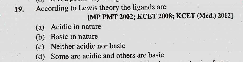 According to Lewis theory the ligands are (a) Acidic in nature (b) Basic in nature (c) Neither acidic nor basic According to Lewis theory the ligands are (a) Acidic in nature (b) Basic in nature (c) Neither acidic nor basic December 3, 2020 Category: Uncategorised (JEE Advanced Physics by BM Sharma + GMP Solutions) , Facebook Messenger WhatsApp Share this:TwitterFacebook Related