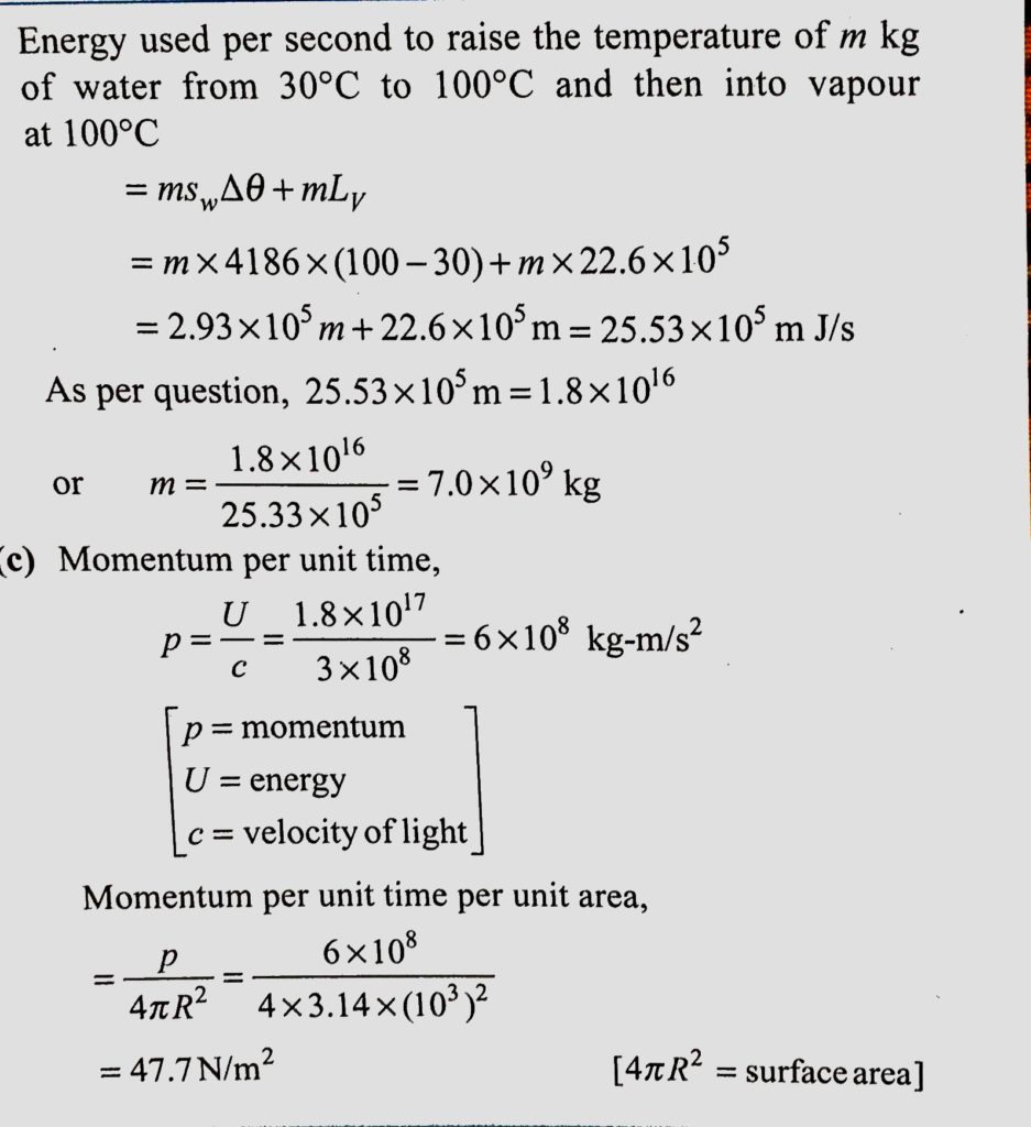 According to stefan’s law of radiation a black body radiates energy σT^4 from is unit surface area every second where T is the surface temperature of the black body and σ=5.67×10^−8W/m^2K^4 is known as Stefan’s of as a ball of radius 0.5m When detonated it reaches temperature of 106K and can be treated as a black body Estimate the power it radiates .