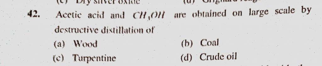 Acetic acid and CH3OH are obtained on large scale by destructive distillation of (a) Wood (b) Coal (c) Turpentine (d) Crude oil Acetic acid and CH3OH are obtained on large scale by destructive distillation of (a) Wood (b) Coal (c) Turpentine (d) Crude oil February 10, 2021 Category: Uncategorised (JEE Advanced Physics by BM Sharma + GMP Solutions) , Facebook Messenger WhatsApp Share this:TwitterFacebook Related