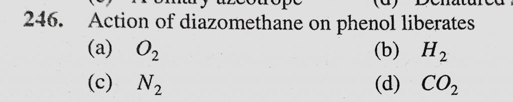 Action of diazomethane on phenol liberates (a) O2 (b) H2 (c) N2 (d) CO2 Action of diazomethane on phenol liberates (a) O2 (b) H2 (c) N2 (d) CO2 February 11, 2021 Category: Uncategorised (JEE Advanced Physics by BM Sharma + GMP Solutions) , Facebook Messenger WhatsApp Share this:TwitterFacebook Related