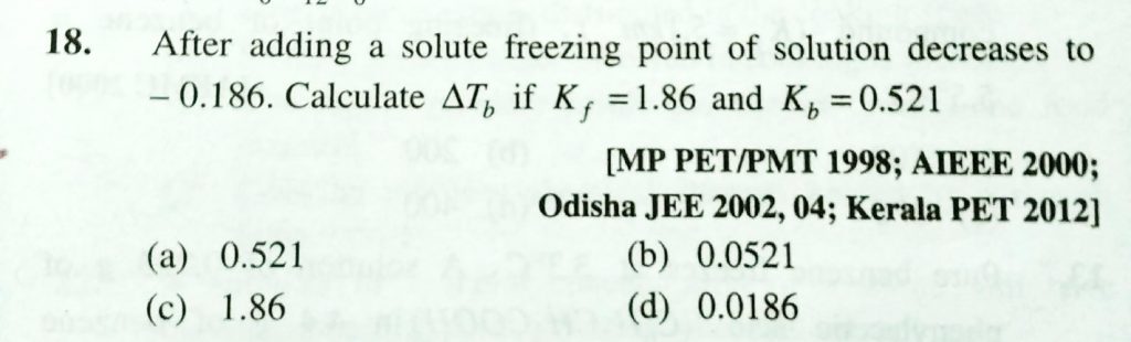 After adding a solute freezing point of solution decreases to 0.186 . Calculate delta Tb if Kf = 1.86 and Kb = 0.521 After adding a solute freezing point of solution decreases to 0.186 . Calculate delta Tb if Kf = 1.86 and Kb = 0.521 December 14, 2020 Category: Uncategorised (JEE Advanced Physics by BM Sharma + GMP Solutions) , Facebook Messenger WhatsApp Share this:TwitterFacebook Related