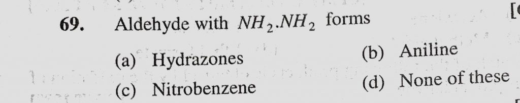 Aldehyde with NH2.NH2 forms (a) Hydrazones (b) Aniline (c) Nitrobenzene (d) None of these Aldehyde with NH2.NH2 forms (a) Hydrazones (b) Aniline (c) Nitrobenzene (d) None of these February 12, 2021 Category: Uncategorised (JEE Advanced Physics by BM Sharma + GMP Solutions) , Facebook Messenger WhatsApp Share this:TwitterFacebook Related