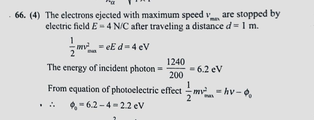 All electrons ejected from a surface by incident light of wavelength 200 nm can be stopped before travelling 1 m in the direction of a uniform electric field of 4 N/C. The work function All electrons ejected from a surface by incident light of wavelength 200 nm can be stopped before travelling 1 m in the direction of a uniform electric field of 4 N/C. The work function October 14, 2020 Category: Uncategorised (JEE Advanced Physics by BM Sharma + GMP Solutions) , Facebook Messenger WhatsApp Share this:TwitterFacebook Related
