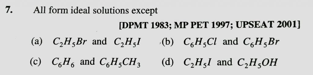 All form ideal solutions expect (a) C2H5Br and C2H5I (b) C6H5CL and C6H5 Br (c) C6H6 and C6H5CH3 (d) C2H5I and C2H5OH All form ideal solutions expect (a) C2H5Br and C2H5I (b) C6H5CL and C6H5 Br (c) C6H6 and C6H5CH3 (d) C2H5I and C2H5OH December 13, 2020 Category: Uncategorised (JEE Advanced Physics by BM Sharma + GMP Solutions) , Facebook Messenger WhatsApp Share this:TwitterFacebook Related