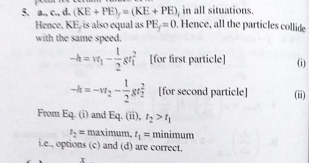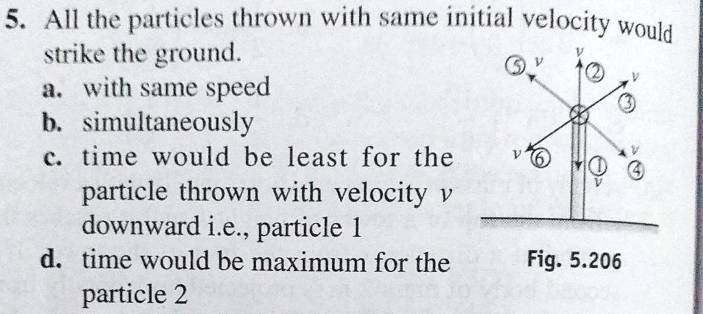 All the particles thrown with same initial velocity would strike the ground. a. with same speed b. simultaneously c. time would be least for the particle thrown with velocity v downward i.e., particle 1 All the particles thrown with same initial velocity would strike the ground. a. with same speed b. simultaneously c. time would be least for the particle thrown with velocity v downward i.e. particle 1 September 24, 2020 Category: Uncategorised (JEE Advanced Physics by BM Sharma + GMP Solutions) , Facebook Messenger WhatsApp Share this:TwitterFacebook Related