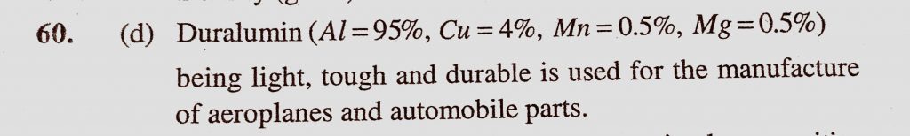 Alloys of ………………. metal are light and strong and so are used in the manufacture of aeroplane parts (a) Cr (b) Sn (c) Fe (d) Mg Alloys of ................... metal are light and strong and so are used in the manufacture of aeroplane parts (a) Cr (b) Sn (c) Fe (d) Mg November 15, 2020 Category: Uncategorised (JEE Advanced Physics by BM Sharma + GMP Solutions) , Facebook Messenger WhatsApp Share this:TwitterFacebook Related