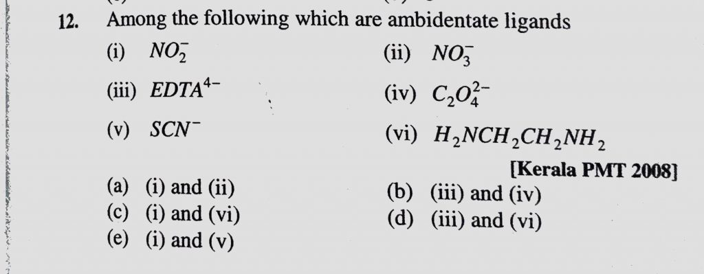 Among the following which are ambidentate ligands (1) NO2 – (2) NO3 – (3) EDTA 4- Among the following which are ambidentate ligands (1) NO2 - (2) NO3 - (3) EDTA 4- December 3, 2020 Category: Uncategorised (JEE Advanced Physics by BM Sharma + GMP Solutions) , Facebook Messenger WhatsApp Share this:TwitterFacebook Related