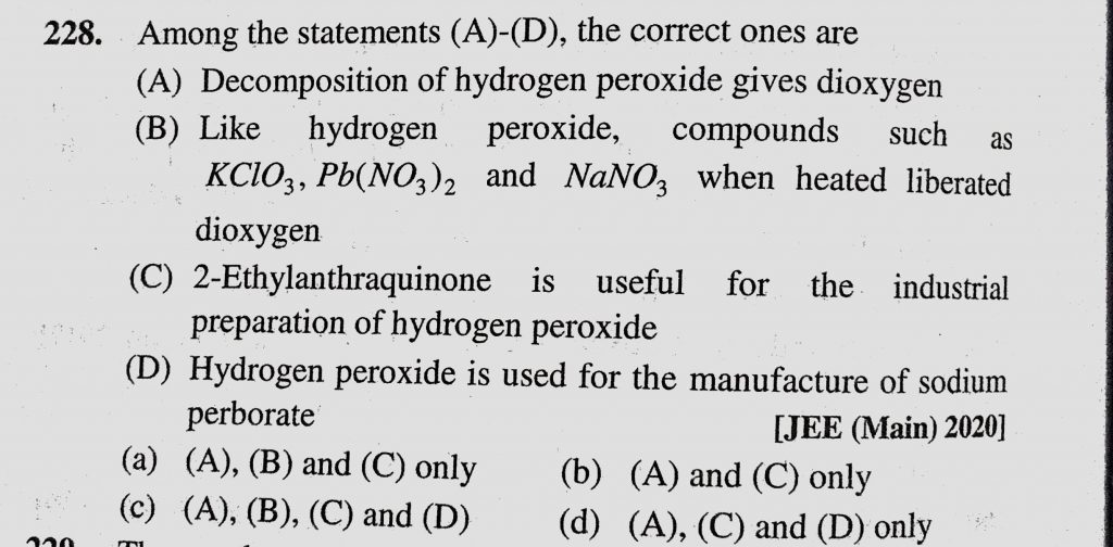 Among the statement (A)-(D), the correct ones are (A) Decomposition of hydrogen peroxide gives dioxygen Among the statement (A)-(D) the correct ones are (A) Decomposition of hydrogen peroxide gives dioxygen November 28, 2020 Category: Uncategorised (JEE Advanced Physics by BM Sharma + GMP Solutions) , Facebook Messenger WhatsApp Share this:TwitterFacebook Related