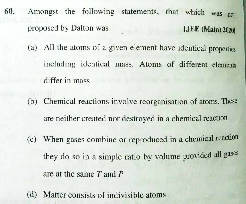 Amongst the following statements , that which was not proposed by Dalton was Amongst the following statements that which was not proposed by Dalton was November 25, 2020 Category: Uncategorised (JEE Advanced Physics by BM Sharma + GMP Solutions) , Facebook Messenger WhatsApp Share this:TwitterFacebook Related