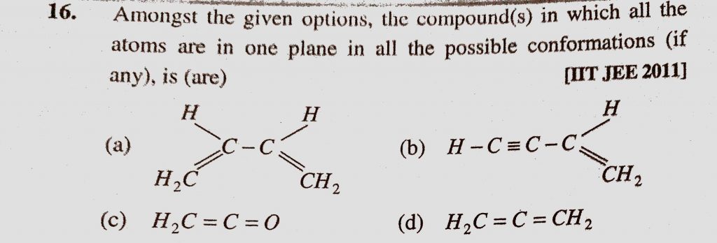 Amongst the given options, the compound(s) in which all the atoms are in one plane in all the possible conformations (if any ) , is (are) Amongst the given options is are the compound(s) in which all the atoms are in one plane in all the possible conformations (if any ) December 12, 2020 Category: Uncategorised (JEE Advanced Physics by BM Sharma + GMP Solutions) , Facebook Messenger WhatsApp Share this:TwitterFacebook Related