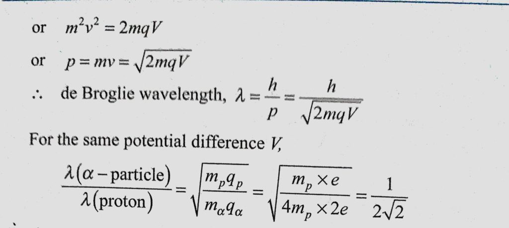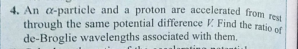An alpha particle and a proton are accelerated from rest through the same potential difference V. Find the ratio of de-Broglie wavelengths associated with them. An alpha particle and a proton are accelerated from rest through the same potential difference V. Find the ratio of de-Broglie wavelengths associated with them. October 12, 2020 Category: Uncategorised (JEE Advanced Physics by BM Sharma + GMP Solutions) , Facebook Messenger WhatsApp Share this:TwitterFacebook Related