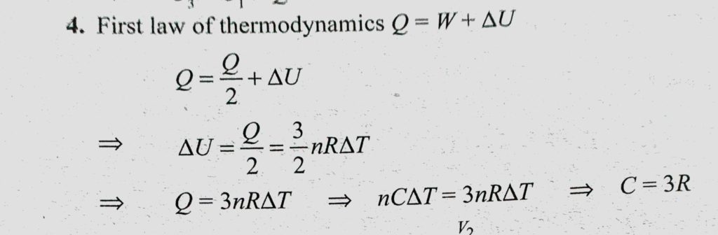 An amount Q of heat is added to a monatomic ideal gas in a process in which the gas perform a work Q/2 on its surrounding. Find the molar heat capacity for the process. An amount Q of heat is added to a monatomic ideal gas in a process in which the gas perform a work Q/2 on its surrounding. Find the molar heat capacity for the process. October 28, 2020 Category: Uncategorised (JEE Advanced Physics by BM Sharma + GMP Solutions) , Facebook Messenger WhatsApp Share this:TwitterFacebook Related