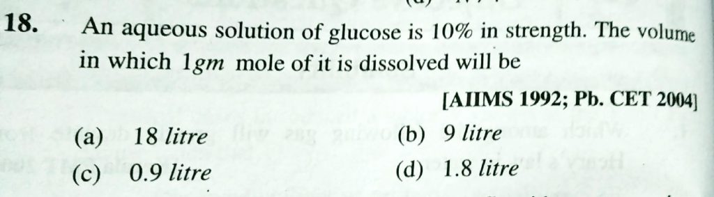 An aqueous solution of glucose is 10% in strength . The volume in which 1 gm mole of it is dissolved will be An aqueous solution of glucose is 10% in strength . The volume in which 1 gm mole of it is dissolved will be December 10, 2020 Category: Uncategorised (JEE Advanced Physics by BM Sharma + GMP Solutions) , Facebook Messenger WhatsApp Share this:TwitterFacebook Related