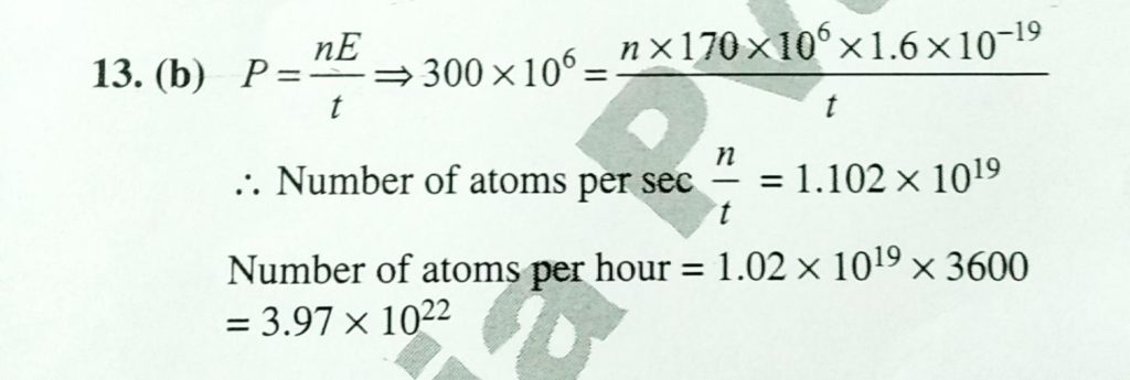 An atomic power nuclear reactor can deliver 300 MW. The energy released due to fission of each nucleus of uranium atom U^238 is 170 Me V. The number of uranium atoms fissioned per hour will be An atomic power nuclear reactor can deliver 300 MW. The energy released due to fission of each nucleus of uranium atom U^238 is 170 Me V. The number of uranium atoms fissioned per hour will be September 15, 2020 Category: Uncategorised (JEE Advanced Physics by BM Sharma + GMP Solutions) , Facebook Messenger WhatsApp Share this:TwitterFacebook Related