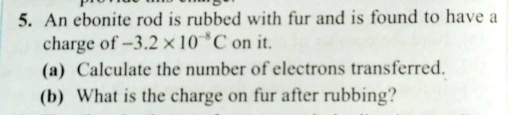 An ebonite rod is rubbed with fur and is found to have a charge of -3.2 x 10 ^-8 C on it . (a) Calculate the number of electrons transferred. (b) what is the charge on fur after rubbing ? An ebonite rod is rubbed with fur and is found to have a charge of -3.2 x 10 ^-8 C on it . (a) Calculate the number of electrons transferred. (b) what is the charge on fur after rubbing ? October 28, 2020 Category: Uncategorised (JEE Advanced Physics by BM Sharma + GMP Solutions) , Facebook Messenger WhatsApp Share this:TwitterFacebook Related
