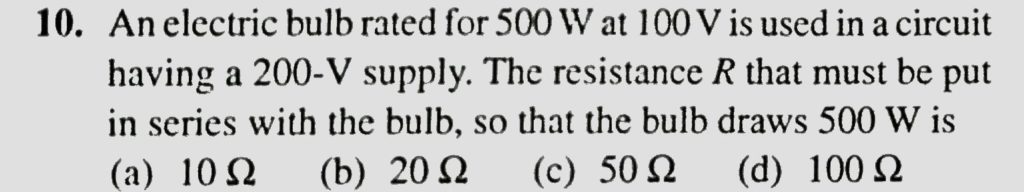 An electric bulb rated for 500 W at 100 V having a 200 – V supply. The resistance R that must be put in series with the bulb draws 500 W is An electric bulb rated for 500 W at 100 V having a 200 - V supply. The resistance R that must be put in series with the bulb draws 500 W is September 21, 2020 Category: Uncategorised (JEE Advanced Physics by BM Sharma + GMP Solutions) , Facebook Messenger WhatsApp Share this:TwitterFacebook Related