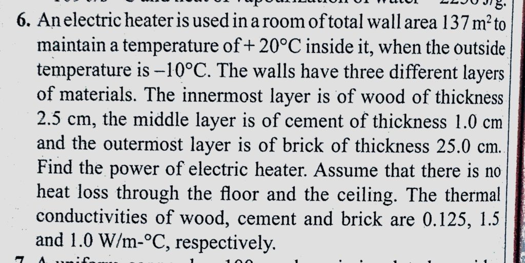 An electric heater is used in a room of total wall area 137 m^2 to maintain a temperature of +20 C inside it, when the outside temperature is -10 C. The walls have three different layers of material. An electric heater is used in a room of total wall area 137 m^2 to maintain a temperature of +20 C inside it when the outside temperature is -10 C. The walls have three different layers of material. October 24, 2020 Category: Uncategorised (JEE Advanced Physics by BM Sharma + GMP Solutions) , Facebook Messenger WhatsApp Share this:TwitterFacebook Related