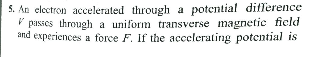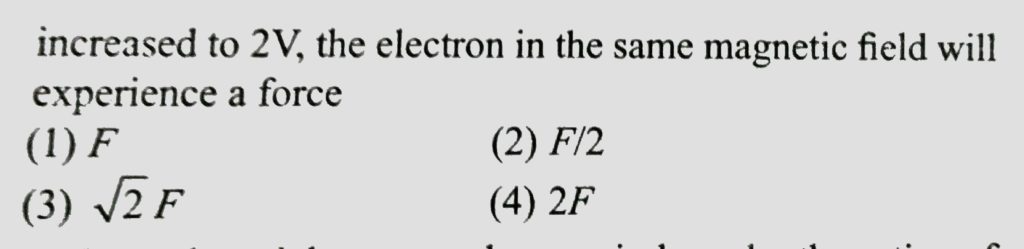 An electron accelerated through a potential difference V passes through a uniform transverse magnetic field and experiences a force F. If the accelerating potential is increased to 2V, the electron in the same field will experience a force An electron accelerated through a potential difference V passes through a uniform transverse magnetic field and experiences a force F. If the accelerating potential is increased to 2V the electron in the same field will experience a force October 13, 2020 Category: Uncategorised (JEE Advanced Physics by BM Sharma + GMP Solutions) , Facebook Messenger WhatsApp Share this:TwitterFacebook Related