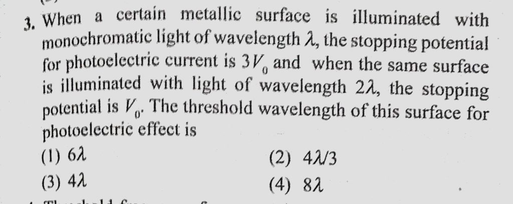 When a certain metallic surface is illuminated with monochromatic light of wavelength lemda, the stopping potential for photoelectric current is 3 V0 and when the same surface is illuminated the stopping potential for photoelectric current is 3 V0 and when the same surface is illuminated When a certain metallic surface is illuminated with monochromatic light of wavelength lemda October 12, 2020 Category: Uncategorised (JEE Advanced Physics by BM Sharma + GMP Solutions) , Facebook Messenger WhatsApp Share this:TwitterFacebook Related