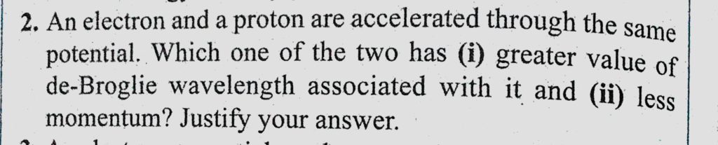 An electron and a proton are accelerated through the same potential. Which one of the two has (1) greater value of de-Broglie wavelength associated with it and (2) less momentum? An electron and a proton are accelerated through the same potential. Which one of the two has (1) greater value of de-Broglie wavelength associated with it and (2) less momentum? October 12, 2020 Category: Uncategorised (JEE Advanced Physics by BM Sharma + GMP Solutions) , Facebook Messenger WhatsApp Share this:TwitterFacebook Related