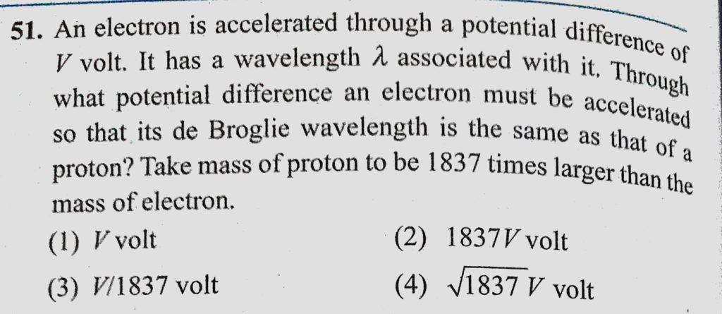 An electron is accelerated through a potential difference of V volt. It has a wavelength lemda associated with it. Through what potential difference an electron must be accelerated so that An electron is accelerated through a potential difference of V volt. It has a wavelength lemda associated with it. Through what potential difference an electron must be accelerated so that October 14, 2020 Category: Uncategorised (JEE Advanced Physics by BM Sharma + GMP Solutions) , Facebook Messenger WhatsApp Share this:TwitterFacebook Related