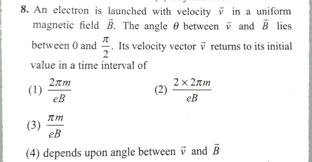 An electron is launched with velocity v in a uniform magnetic field B. The angle θ between v and B lies between 0 and π/2. Its velocity vector v returns to its initial value in a time interval of An electron is launched with velocity v in a uniform magnetic field B. The angle θ between v and B lies between 0 and π/2. Its velocity vector v returns to its initial value in a time interval of October 13, 2020 Category: Uncategorised (JEE Advanced Physics by BM Sharma + GMP Solutions) , Facebook Messenger WhatsApp Share this:TwitterFacebook Related