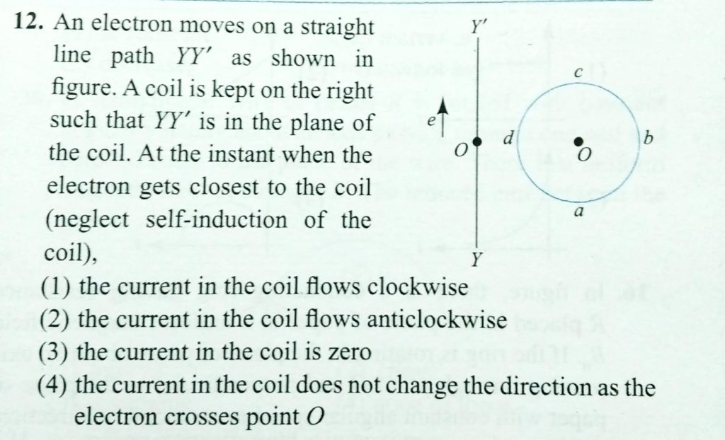 An electron moves on a straight line path YY’ as shown in figure. A coil is kept on the right such that YY’ is the plane of the coil. At the instant when the electron gets closest to the coil (neglect self-induction of the coil) A square coil ACDE with its plane vertical is released from rest in a horizontal uniform magnetic field B of length 2 L ( fig) . THe acceleration of the coil is October 19, 2020 Category: Uncategorised (JEE Advanced Physics by BM Sharma + GMP Solutions) , Facebook Messenger WhatsApp Share this:TwitterFacebook Related