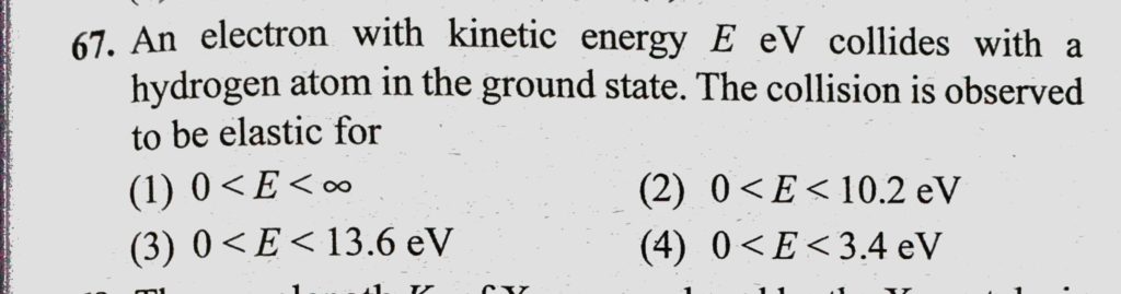 An electron with kinetic energy E eV collides with a hydrogen atom in the ground state. The collision is observed to be elastic for An electron with kinetic energy E eV collides with a hydrogen atom in the ground state. The collision is observed to be elastic for October 16, 2020 Category: Uncategorised (JEE Advanced Physics by BM Sharma + GMP Solutions) , Facebook Messenger WhatsApp Share this:TwitterFacebook Related