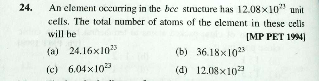 An element occuring in the bcc structure has 12.08 x 10^23 unit cells. The total number of atoms of the element in these cells will be An element occuring in the bcc structure has 12.08 x 10^23 unit cells. The total number of atoms of the element in these cells will be February 8, 2021 Category: Uncategorised (JEE Advanced Physics by BM Sharma + GMP Solutions) , Facebook Messenger WhatsApp Share this:TwitterFacebook Related