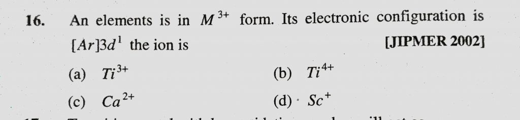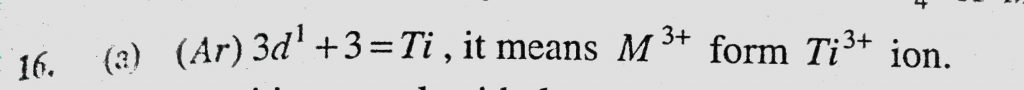 An elements is in M 3+ form. Its electronic configuration is (Ar) 3d1 the ion is (a) Ti 3+ (b) Ti 4+ (c) Ca 2+ (d) Sc + An elements is in M 3+ form. Its electronic configuration is (Ar) 3d1 the ion is (a) Ti 3+ (b) Ti 4+ (c) Ca 2+ (d) Sc + December 2, 2020 Category: Uncategorised (JEE Advanced Physics by BM Sharma + GMP Solutions) , Facebook Messenger WhatsApp Share this:TwitterFacebook Related