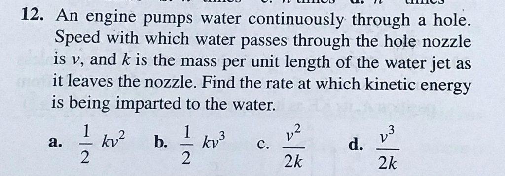 An engine pumps water continuously through a hole. Speed with which water passes through the hole nozzle is v, and k is the mass per unit length of the water jet as it leaves the nozzle. An engine pumps water continuously through a hole. Speed with which water passes through the hole nozzle is v and k is the mass per unit length of the water jet as it leaves the nozzle. October 3, 2020 Category: Uncategorised (JEE Advanced Physics by BM Sharma + GMP Solutions) , Facebook Messenger WhatsApp Share this:TwitterFacebook Related