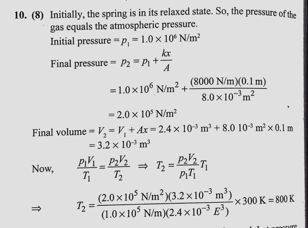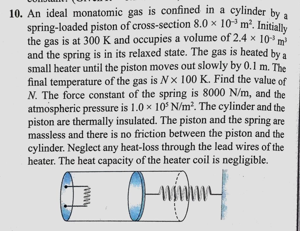 An ideal monatomic gas is confined in a cylinder by a spring-loaded piston of cross-section 8.0 * 10^-3 m^2. Initially the gas is at 300 K and occupies a volume of 2.4 * 10^-3 m^3 and the spring An ideal monatomic gas is confined in a cylinder by a spring-loaded piston of cross-section 8.0 * 10^-3 m^2. Initially the gas is at 300 K and occupies a volume of 2.4 * 10^-3 m^3 and the spring October 28, 2020 Category: Uncategorised (JEE Advanced Physics by BM Sharma + GMP Solutions) , Facebook Messenger WhatsApp Share this:TwitterFacebook Related