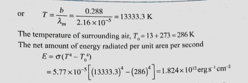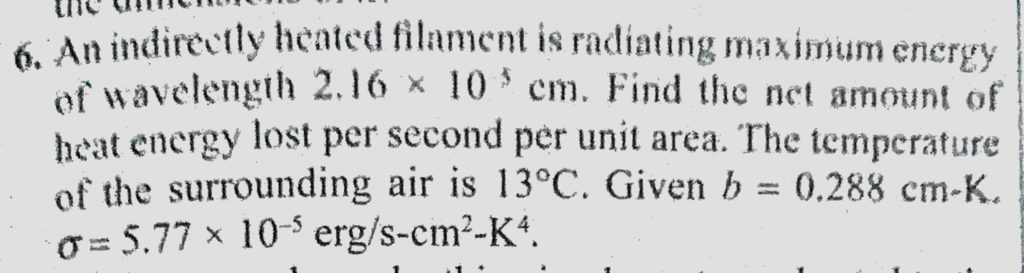 An indirectly heated filament is radiating maximum energy of wavelength 2.16 * 10^-5 cm. Find the net amount of heat energy lost per second per unit area. The temperature of the An indirectly heated filament is radiating maximum energy of wavelength 2.16 * 10^-5 cm. Find the net amount of heat energy lost per second per unit area. The temperature of the October 25, 2020 Category: Uncategorised (JEE Advanced Physics by BM Sharma + GMP Solutions) , Facebook Messenger WhatsApp Share this:TwitterFacebook Related
