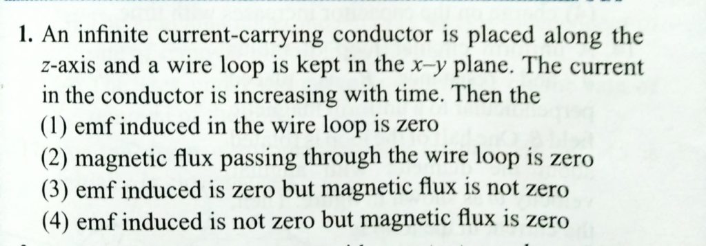 An infinite current carrying conductor is placed along the z axis and a wire looop is kept in the x – y plane. The current in the conductor is increasing with time. Then the An infinite current carrying conductor is placed along the z axis and a wire looop is kept in the x - y plane. The current in the conductor is increasing with time. Then the October 20, 2020 Category: Uncategorised (JEE Advanced Physics by BM Sharma + GMP Solutions) , Facebook Messenger WhatsApp Share this:TwitterFacebook Related