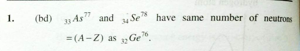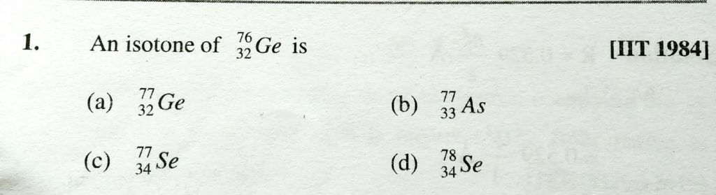 An isotone of 76 32 Ge is (a) 77 32 Ge (b) 77 33 As (c) 77 34 Se (d) 78 34 Se An isotone of 76 32 Ge is (a) 77 32 Ge (b) 77 33 As (c) 77 34 Se (d) 78 34 Se December 1, 2020 Category: Uncategorised (JEE Advanced Physics by BM Sharma + GMP Solutions) , Facebook Messenger WhatsApp Share this:TwitterFacebook Related