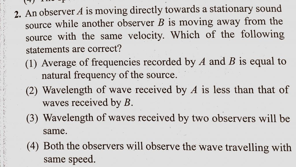 An observer A is moving directly towards a stationary sound source while another observer B is moving away from the source with the same velocity. Which of the following An observer A is moving directly towards a stationary sound source while another observer B is moving away from the source with the same velocity. Which of the following November 8, 2020 Category: Uncategorised (JEE Advanced Physics by BM Sharma + GMP Solutions) , Facebook Messenger WhatsApp Share this:TwitterFacebook Related