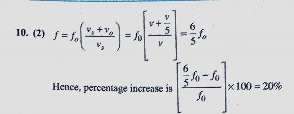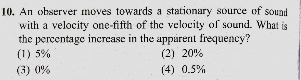 An observer moves towards a stationary source of sound with a velocity one-fifth of the velocity of sound. What is the percentage increase in the apparent frequency ? An observer moves towards a stationary source of sound with a velocity one-fifth of the velocity of sound. What is the percentage increase in the apparent frequency ? November 7, 2020 Category: Uncategorised (JEE Advanced Physics by BM Sharma + GMP Solutions) , Facebook Messenger WhatsApp Share this:TwitterFacebook Related