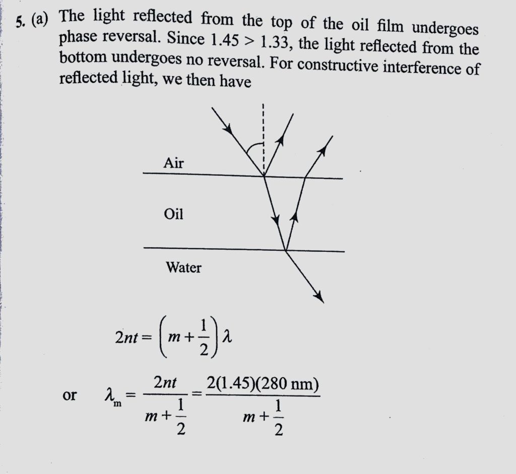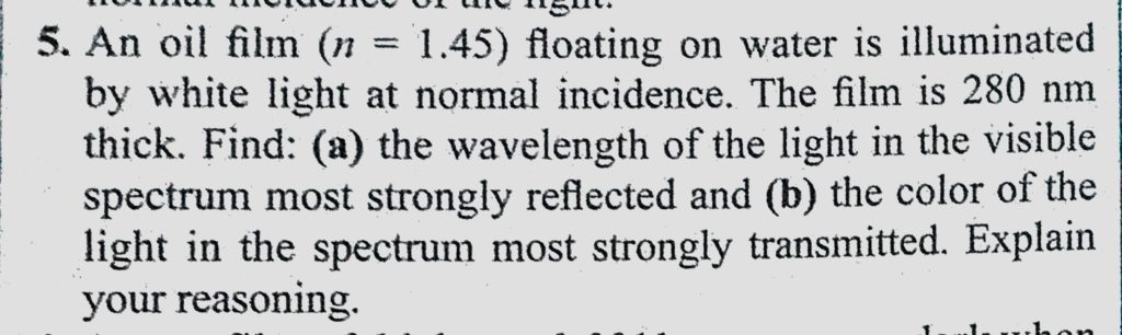 An oil film (n = 1.45) floating on water is illuminated by white light at normal incidence. The film is 280 nm thick. Find: (a) the wavelength of the light in the visible spectrum An oil film (n = 1.45) floating on water is illuminated by white light at normal incidence. The film is 280 nm thick. Find: (a) the wavelength of the light in the visible spectrum October 9, 2020 Category: Uncategorised (JEE Advanced Physics by BM Sharma + GMP Solutions) , Facebook Messenger WhatsApp Share this:TwitterFacebook Related